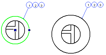 - Ympyräviiva on valittu, jolloin sen kahva ilmestyy näkyviin (kuva vasemmalla).