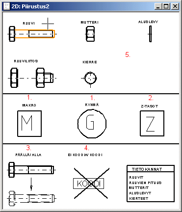 - Valitse mitä piirretään: ruuvi, mutteri, aluslevy, ruuviliitos tai kierre.