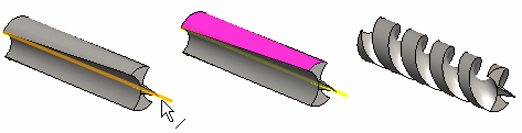- Voit sovittaa pinnat toisiinsa siten, että valitset pinnat, ja pinnat trimmataan toisiin pintoihin siten, että viereiset pinnat jatkuvat luonnollisesti. Voit hyödyntää toisten osien irtopintoja mallinnuksessa.