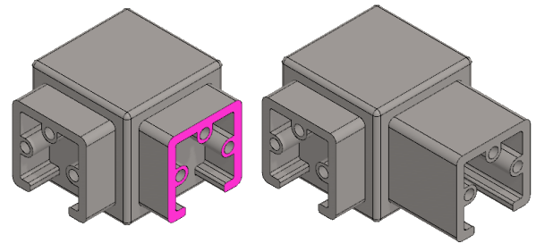 - Vasemmassa kuvassa pintaa on jatkettu 15mm Sisään.