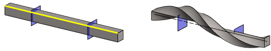 - Kuvassa on osan keskellä kaksi ohjausviivaa, joita käytetään osoittamaan kiertoakseli sekä kiertymän alku- ja loppupäät.