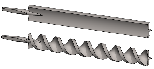 Oikealla: Jääkairaa varten mallinnettu ruuvi.