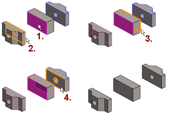 etäisyysehto. - Valitse ensimmäinen osan elementti, esim pinta (1).