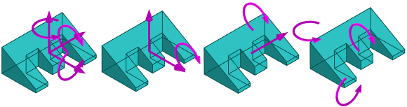 Huomaa: Osa ei kuitenkaan siirry tai kierry, jos koonnan ehdot rajoittavat siirtymää tai kiertymää valitun kahvan suuntaan.