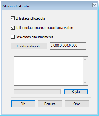 - Jotta massan laskenta antaisi oikeita tuloksia, on osille oltava määritelty