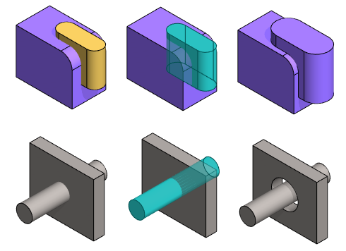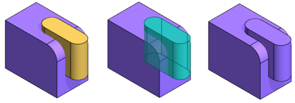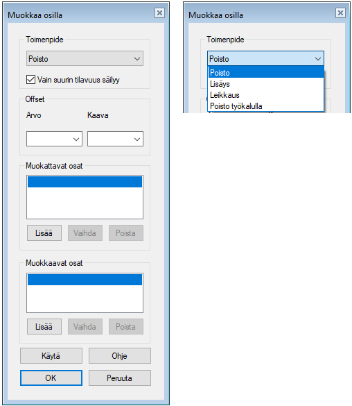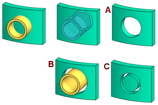 - Muokattavasta osasta poistetaan se geometria, joka on yhteistä muokkaavan (kuvassa