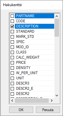 - Voit etsiä kokoonpanomallista annetun hakuehdon mukaan osia ja alikokoonpanoja.