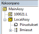 - Voit aloittaa uuden osan tai uuden kokoonpanon tekemisen myös olemassa olevassa kokoonpanossa, jolloin uusi osa/kokoonpano tulee osaksi pääkokoonpanoon.
