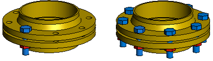 Kun lisäät sarjan, vaihtoehtoina on sijoittaa sarja assosiatiivisesti osan piirresarjaan tai kokoonpanon sarjaan. Esimerkiksi, laippaan lisätään ruuvit ja mutterit kahdella eri tavalla. Lopputulos näyttää samanlaiselta.