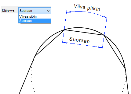 - Viivaa pitkin (Oletus). Tällöin etäisyys lasketaan viivaa pitkin.