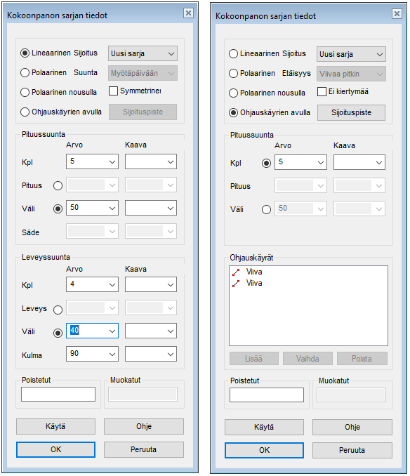 - Määrittää sarjan lineaariseksi. Lineaarisen sarjan voi määrittää kokoonpanoon yhteen suuntaan tai pituus- ja leveyssuuntiin.