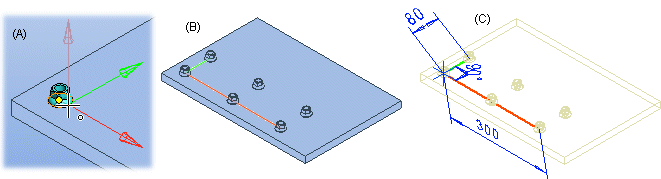 - Osoita apuosan paikka (A) komponentista, josta sarja muodostetaan. Paikaksi voit osoittaa myös muun kuin komponentin pisteen.