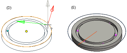 - Osoita apuosan pisteen paikaksi (D) pinnan keskipiste.