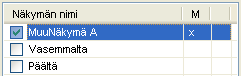 - Mallikohtainen näkymä havainnollistetaan M-kentässä