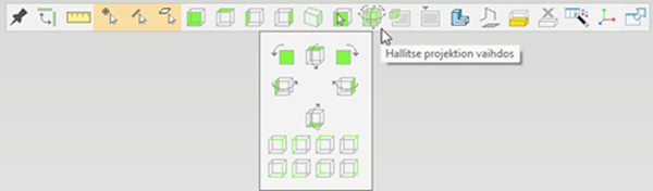 - Projektion vaihto toiminolla voidaan vaihtaa malli-ikkunan projektiota suhteessa malliin