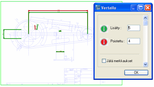 - Avautuu Vertailu-keskusteluikkuna, joka havainnollistaa piirustukseen lisätyt ja poistetut muutokset.