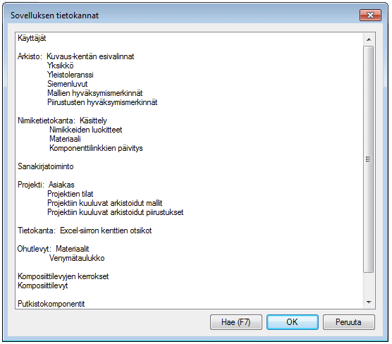 Avautuu Sovelluksen tietokannat -keskusteluikkuna.