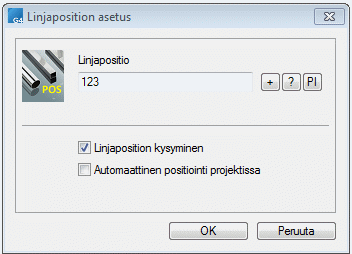 Automaattinen positiointi projektissa. - Jos haluat, että linjapositio kysytään aina, kun aloitat linjan vedon, valitse