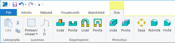 - Täältä löytyvät mm. leikepöytään, osamallin sarjoihin, ehtoihin, työkaluihin, törmäystarkasteluihin ja etäisyyksien tarkasteluun liittyvät toiminnot.