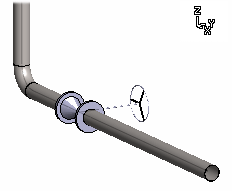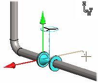 - Kun olet lisäämässä komponentin putken keskiviivalle, näet komponentin paikallisen koordinaatiston.