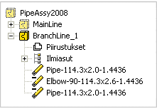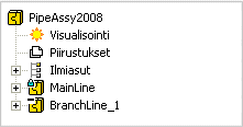 - Kokoonpanoon lisätyt MainLine (päälinja) ja BranchLine_1 (haaralinja) ovat paikallisia putkikokoonpanoja.