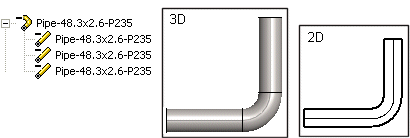 - 3D-mallissa putkikäyrä ja taivutettu putki näyttävät samanlaiselta. Kokoonpanopuussa esitystapa on erilainen.