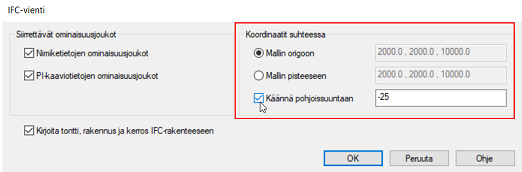 - Oletussuunta on IFC-tiedostoon kirjoitettu pohjoissuunta.