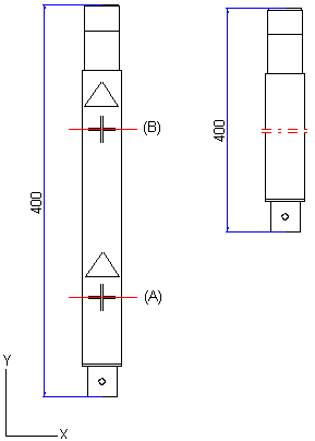 - Osoitetaan kaksi katkaisukohtaa X-akselin suuntaista katkaisukohtaa: katkaisukohta (A) ja sen jälkeen katkaisukohta (B).