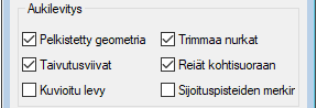 - Jos nurkat on erikseen trimmattu, niin todellinen geometria piirretään tästä valinnasta piittaamatta.