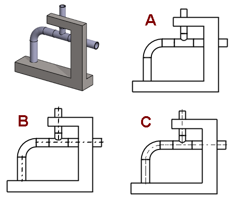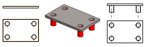 - Kokoonpanomallin piirustuksen (tavallinen) projektio.