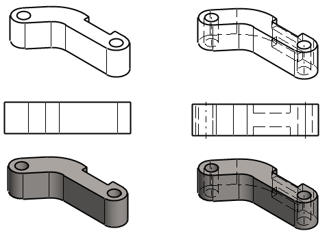 - Tangentiaalisten pintojen välillä syntyy näennäisiä muotoviivoja. Valitse piirto muotoviivana tai ohuena viivana, tai estä tangentiaalisten viivojen piirto projektioon.