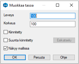 - Leveys: Luonnostelutason leveys. Tämä mitta ei kuitenkaan rajoita luonnostelun aluetta, kun luonnostelutaso valitaan työtasoksi.