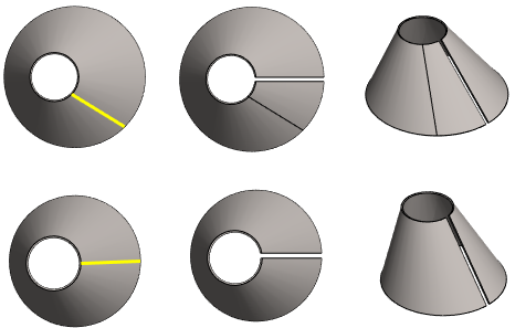ohutlevyksi määriteltävää lieriöä tai kartiota. Ohutlevyn pinta "katkeaa" osoitetun