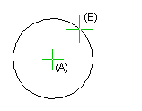 Ympyrä osoittaen keskipiste ja kehäpiste(3D)