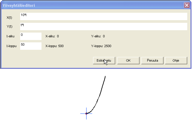 - Toiminnon käyttö perustuu siihen, että annat alku- ja lopetuspisteen, ja sen lisäksi määrittelet yhtälön, jota käyrä pisteiden välillä noudattaa.