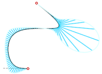 Tarkastele spline-käyrän kaarevuutta visualisoinnin avulla. Visualisointi näkyy ainoastaan luonnostelutilassa, mutta malliin tallentuu tieto käyrän visualisoinnista. Ohjelma piilottaa visualisoinnin kun luonnos suljetaan ja näyttää sen, jos luonnos avataan uudelleen. Muokkaa visualisoinnin asetuksia käyrän tilannekohtaisesta valikosta käyrän ollessa visualisoitu.