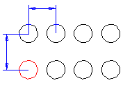 Muodostetaan suoraviivainen sarja ympyröistä - vaakasuuntaan lukumäärä 4 ja pystysuuntaan 2. Väli on esitetty esimerkissä mittaviivalla. Sarjan elementit ovat assosiatiivisia geometriaan, jonka perusteella sarjan muodostat.