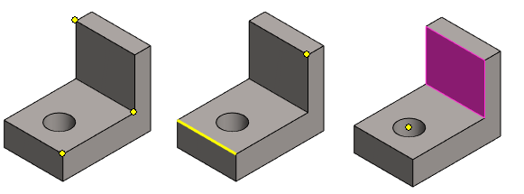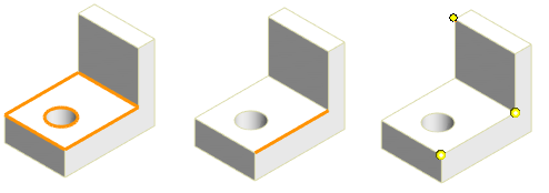 Nämä valinnat ovat käytettävissä, kun osa on valittu muokattavaksi kokoonpanossa, jossa on muita osia (kuvassa harmaana näkyvä osa).