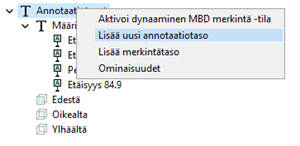 - Annotaatiotasoja voi luoda, muokata ja poistaa puun kautta.