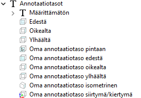 Itse luodut annotaatiotasot näkyvät luontijärjestyksessä puussa vakioannotaatiotasojen jälkeen.