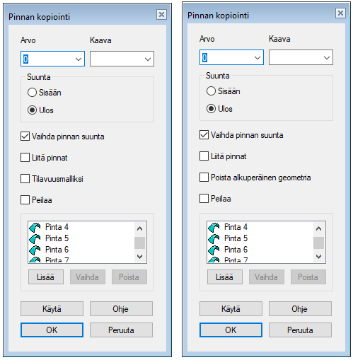 • Offset-arvo määrittää kopioidun pinnan etäisyyden alkuperäisestä pinnasta.