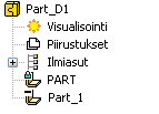 PART. - Osasta poistettava materiaali (tilavuus) tallentuu kokoonpanon paikalliseksi osaksi, jonka voit itse nimetä.