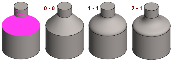 - Kolmas vasemmalta: Tangeeraus molempiin päätypintoihin kertoimella 1.