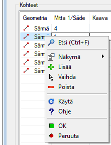 - Pyöristysten listaa käsittelevät toiminnot löytyvät tilannekohtaisesta valikosta, kun olet lisäämässä tai muokkaamassa viisteitä.