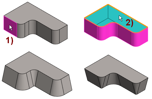 - Päästö tehdään oletusarvoisesti kaikkiin valitulle pinnalle tangentiaalisille pinnoille kerralla, joten päästöt kannattaa lisätä ennen pienten nurkkapyöristysten lisäystä.