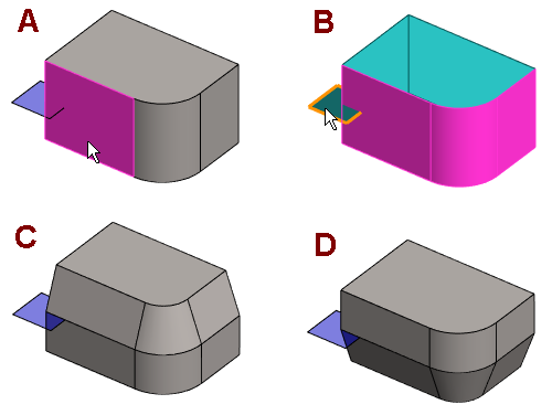 Päästä.- Ohjelma valitsee päästettäviksi pinnoiksi kaikki osoitetulle pinnalle tangentiaaliset pinnat.