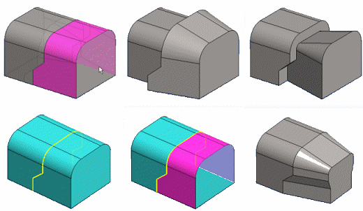 Päästö voidaan muodostaa jakoviivalla jaettuun osan pintaan. Valitaan pinnat sekä jakoviivan viivat yksitellen. Valitaan referenssitasoksi osan pinta, jonka reunaviiva yhtyy päästettävään pintaan. Poistava päästö vaikuttaa referenssitason normaalin suuntaan.