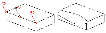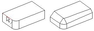 - Pyöristys - Määritetään nurkkapisteeseen, yhteen tai useampaan viivaan vakiosäteellä tai muuttuvalla säteellä, kahden elementin väliin esimerkiksi pintojen liitoskohtaan. Kun lisäät osaan pyöristyksiä, lisää isot pyöristykset ensin ja pienet pyöristykset vasta lopuksi, jolloin piirteet eivät turhaan hidasta mallin käsittelyä.