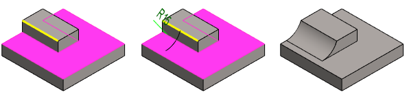 - Elementtiparin pinta-viiva pyöristys on mahdollinen silloin, kun pyöristys osuu pintaan. Liian suuri säteen arvo estää pyöristyksen muodostuminen.