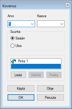 - Määrittää seinämän vahvuuden arvon. Seinämä lisätään pinnan reunaviivaan nähden.